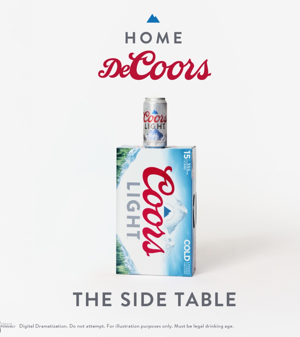 Coors Light comunica la idea con una pieza audiovisual en la que postula sus cajas de cerveza, desde las de 6 hasta las de 60 latas, como piezas de mobiliario. Además, ha creado un sitio web específico para la acción en la que muestra los distintos formatos de producto como diferentes muebles, ofreciendo con ello una nueva visión sobre la decoración tradicional del hogar.