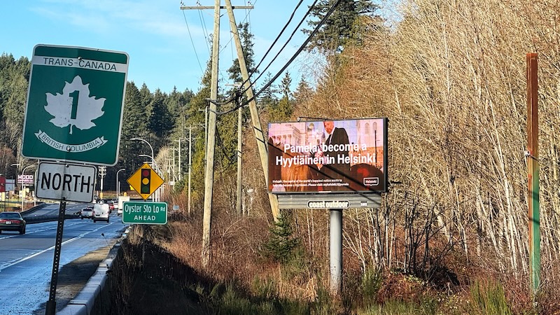 Helsinki ha trasladado la invitación hasta Vancouver Island, donde reside Anderson, mediante vallas publicitarias colocadas en las carreteras de acceso a la zona. Además, la landing page de la campaña incorpora un guiño adicional: solicita confirmar que quien accede es realmente Pamela Anderson antes de continuar, reforzando el tono lúdico y consciente de la propuesta.