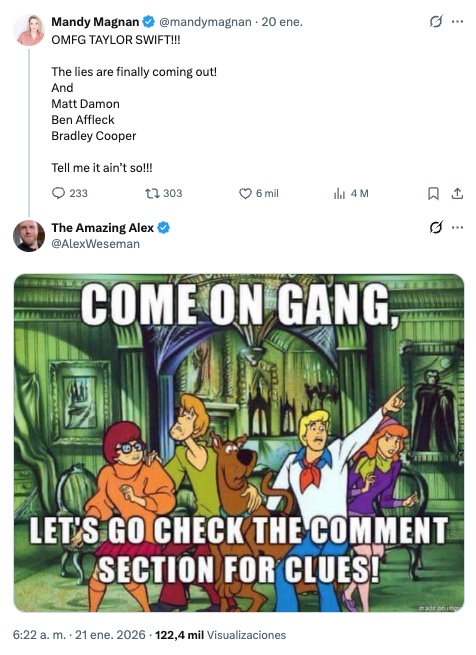 De esta forma, X retroalimenta la actividad en su propia plataforma. La sección de comentarios atraerá a multitudes de usuarios pidiendo pistas, o invocando a Grok para obtener contexto o una explicación generada por la inteligencia artificial. No obstante, los usuarios también han aprendido a identificar el “vagueposting" y lo reflejan también en las respuestas a través de comentarios o memes.