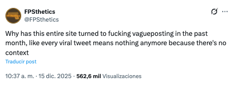 Ese algo es nada, pero hemos querido comenzar este artículo recurriendo a la táctica que articula la tendencia que actualmente recorre las redes sociales, especialmente X. Las plataformas se han plagado de publicaciones que insinúan dramas, conocimientos secretos u opiniones veladas, y su autor ni explica el contexto ni amplía la información. Se trata del “vagueposting”.