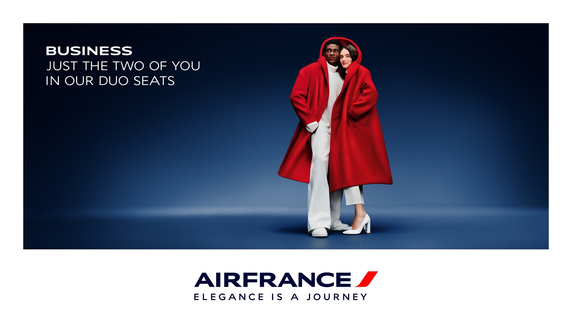 La campaña cuenta con una imagen principal, que ha sido creada por los fotógrafos Sofia Sanchez y Mauro Mongiello, y que contará con su versión en vídeo y en vídeo 3D. En ella se muestra la Torre Eiffel, símbolo universal de Francia, y una mujer ataviada con un vestido rojo, cuya cola ondea al viento. Con ello, se busca consolidar el lema publicitario de la aerolínea, “La elegancia es un viaje. Air France”.