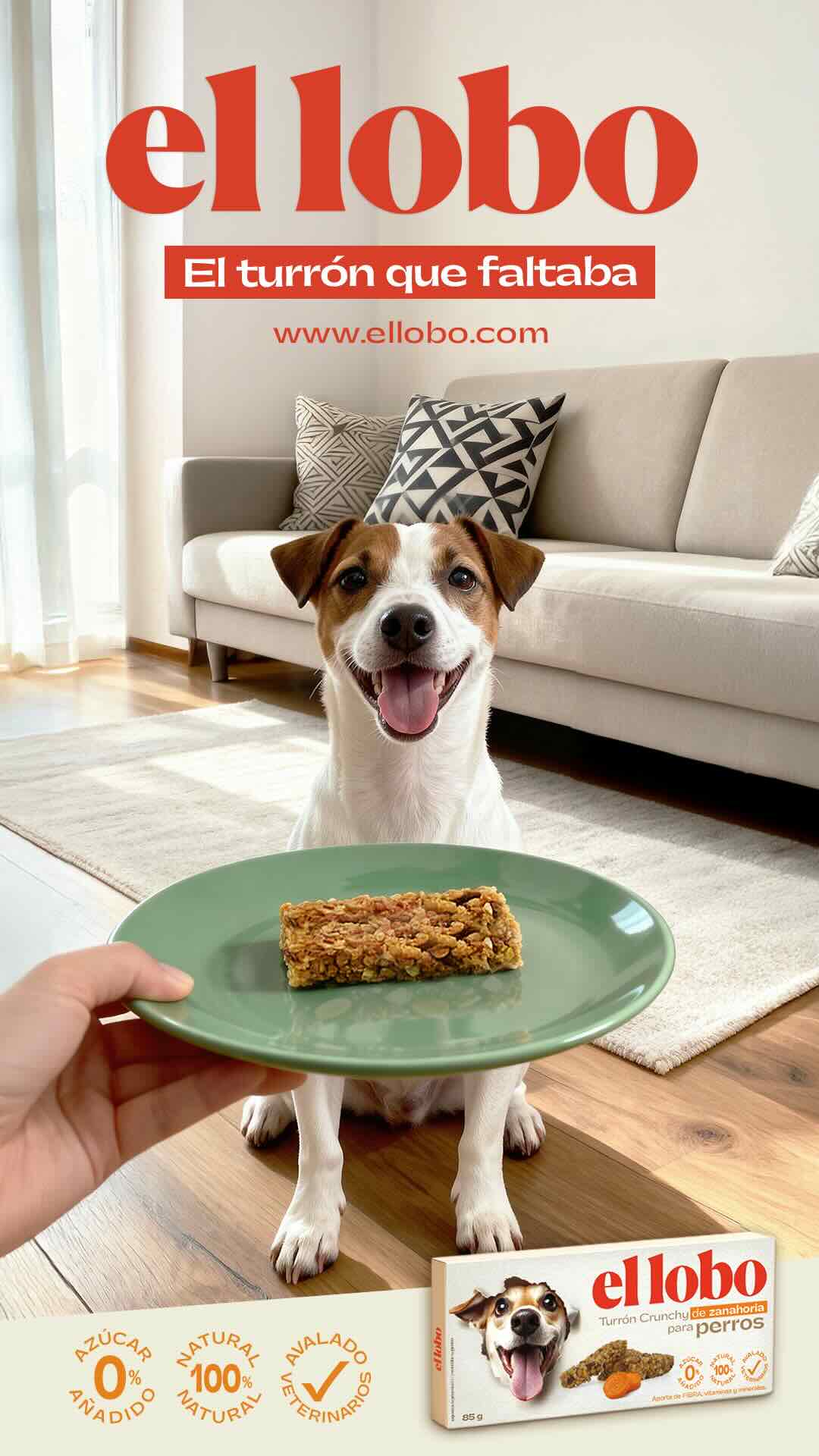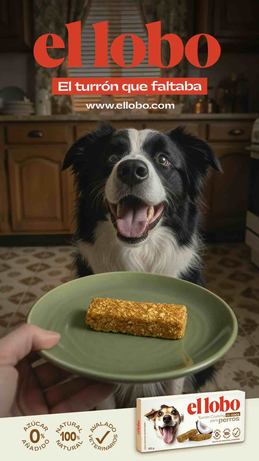 Polvorones de arroz, y turrón crunchy de coco y crunchy de zanahoria. No son los nuevos sabores de dulces navideños para humanos, sino para perros. Los ha lanzado recientemente la marca El Lobo en lo que califica como un movimiento “pionero que redefine el acto de compartir en Navidad e inaugura una nueva categoría dentro del mercado”. Y comunica su nuevo producto con una campaña que, precisamente, ironiza sobre las innovaciones del sector.