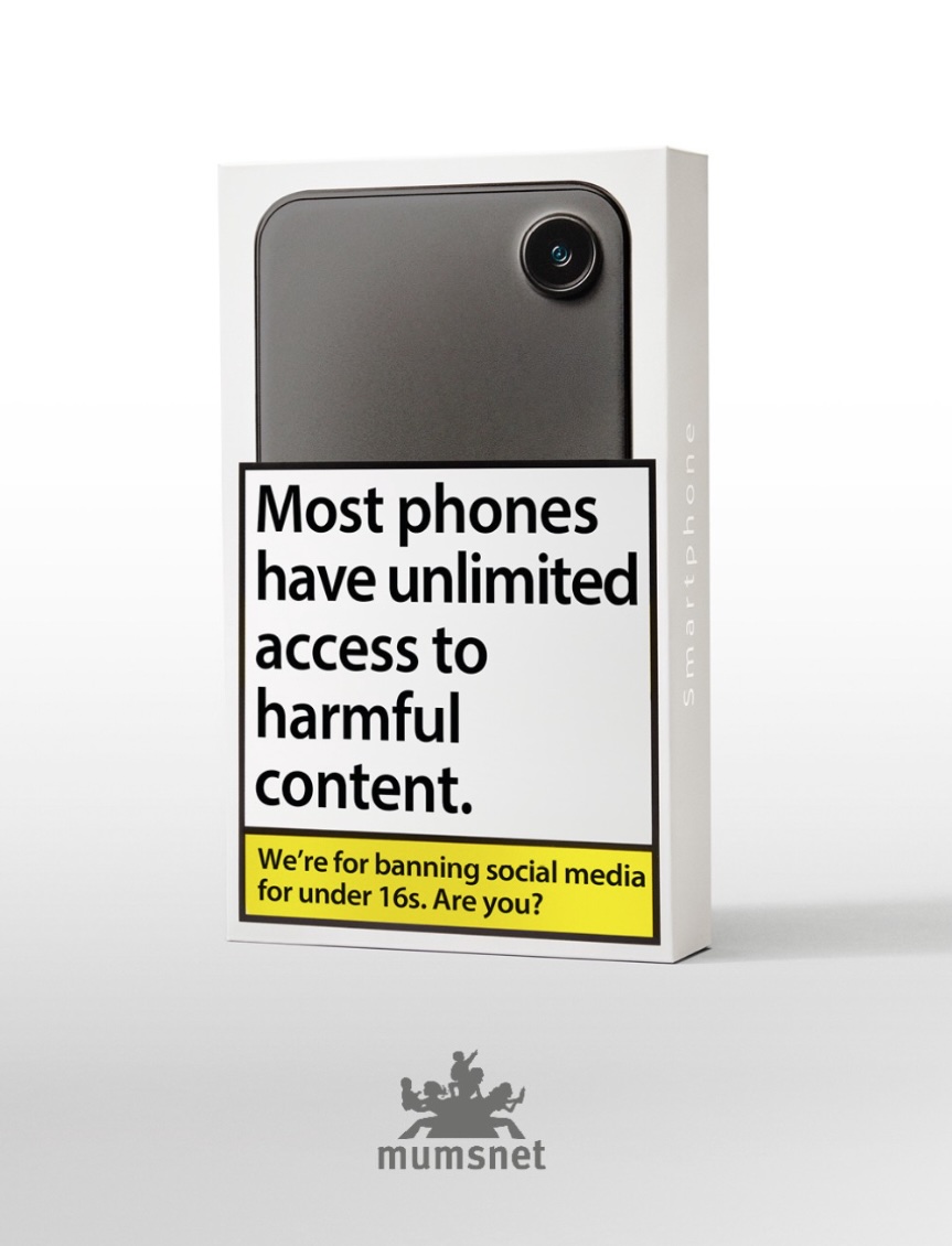 El Gobierno de Reino Unido está sometiendo a consulta pública la posibilidad de prohibir el acceso de los menores de 16 años a las redes sociales, una medida que Australia puso en marcha a principios de este año y que países como Francia, Dinamarca, Portugal o España también están impulsando. Buscando el apoyo a la iniciativa, Mumsnet, plataforma online para madres y padres, ha puesto en marcha una campaña que traslada las advertencias sobre los peligros del tabaco a los teléfonos móviles.