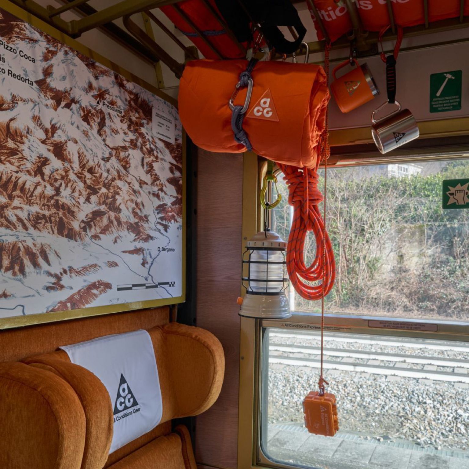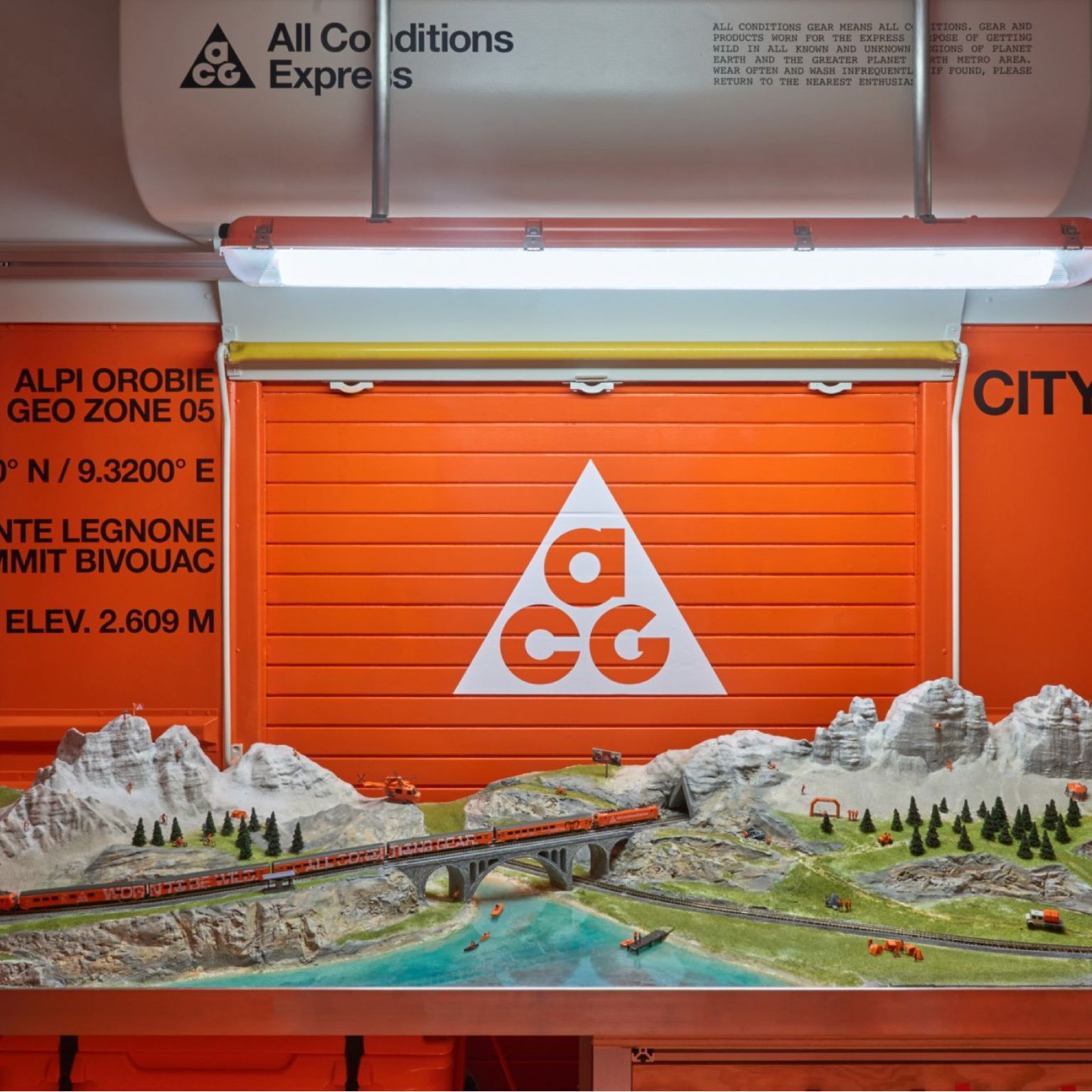 ACG ha aprovechado la celebración de los Juegos Olímpicos de Invierno en Milán y Cortina d'Ampezzo para comunicar el relanzamiento. Allí ha activado el All Conditions Express, un tren brandeado que ha partido desde la estación central de Milán hasta Pian dei Resinelli, una localidad cerca del lago Como. Diseñado por el equipo interno de Nike, cada vagón ha sido acondicionado para trasladar el espíritu aventurero de la marca y su propuesta para la realización de deportes al aire libre.
