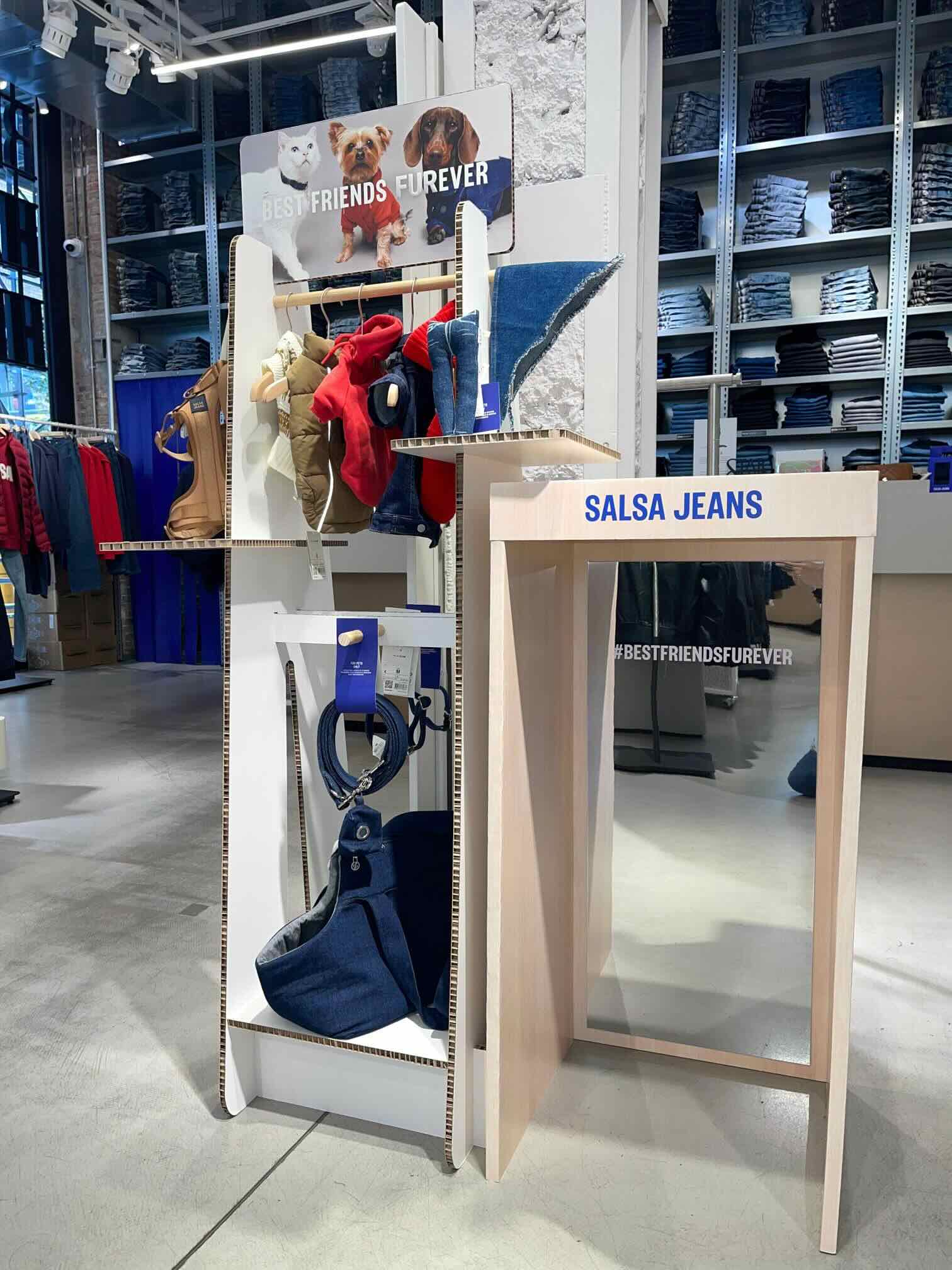 Acompañando el lanzamiento de la colección, Salsa Jeans ha incorporado un probador especialmente diseñado para mascotas en dos de sus tiendas flagship en España, las ubicadas en Gran Vía 27 (Madrid) y Passeig de Gràcia 8–10 (Barcelona). Con ello Salsa Jeans impulsa su diferenciación de otras marcas que también han puesto en marcha colecciones para animales, como Adidas, y refuerza su apuesta por la experiencia de cliente en el retail físico.