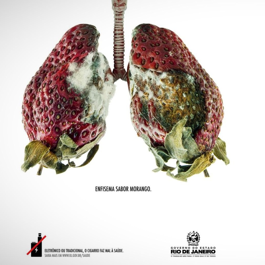 Una campaña del gobierno regional de Río de Janeiro recurrió a la fruta para advertir de los riesgos de los cigarrillos electrónicos.