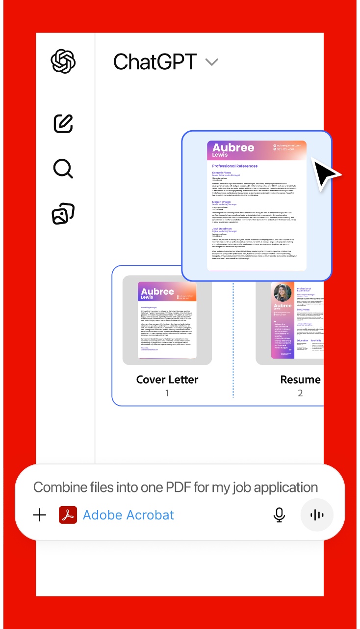 - Acrobat habilita la edición de PDFs directamente en conversación: reorganizar páginas, extraer tablas, combinar varios archivos, comprimir documentos o convertirlos a PDF conservando su formato. También permite censurar información sensible, una funcionalidad clave para entornos profesionales
