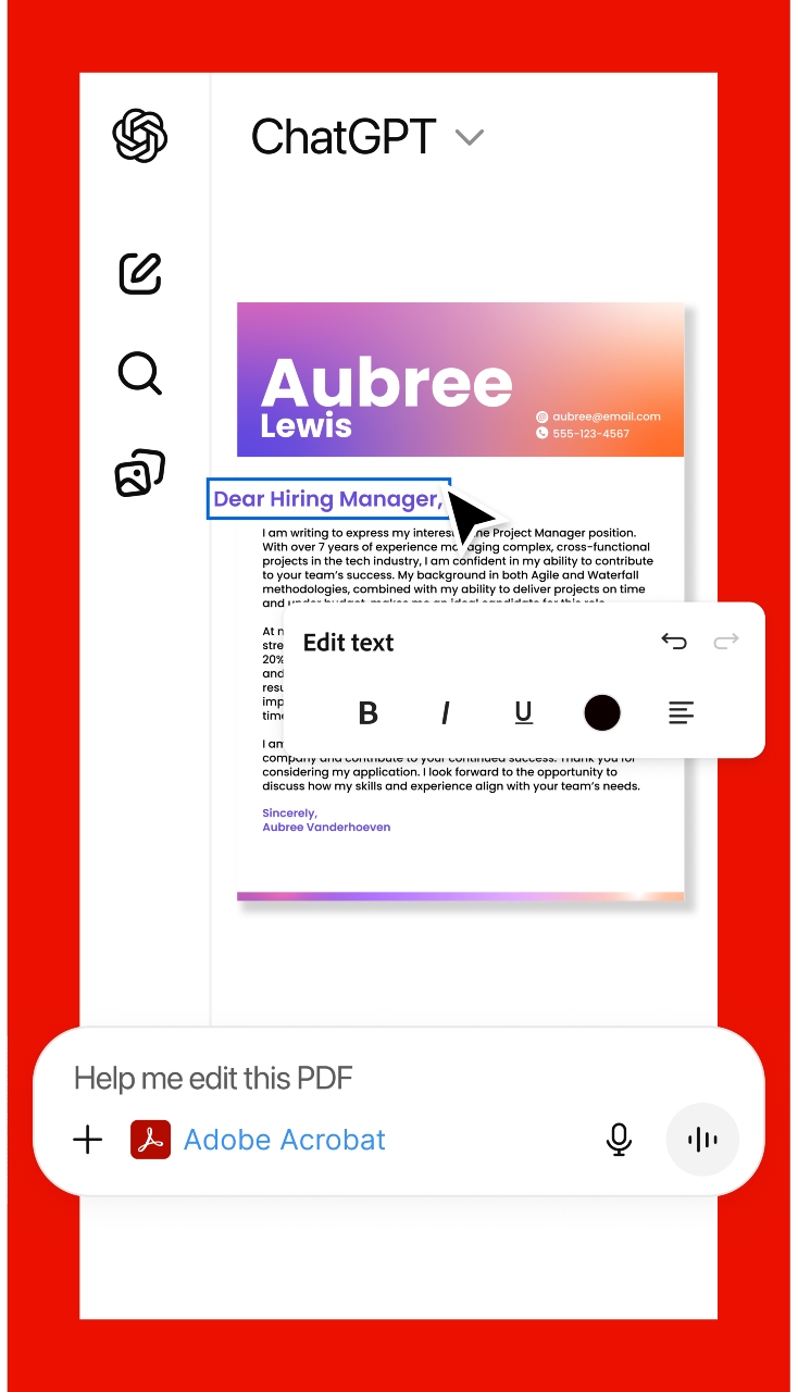 ChatGPT abre automáticamente la interfaz correspondiente, interpreta la instrucción y acompaña al usuario en cada paso. Y, si alguien quiere profundizar o emplear las herramientas completas, puede dar el salto a las aplicaciones nativas de Adobe sin perder el progreso.