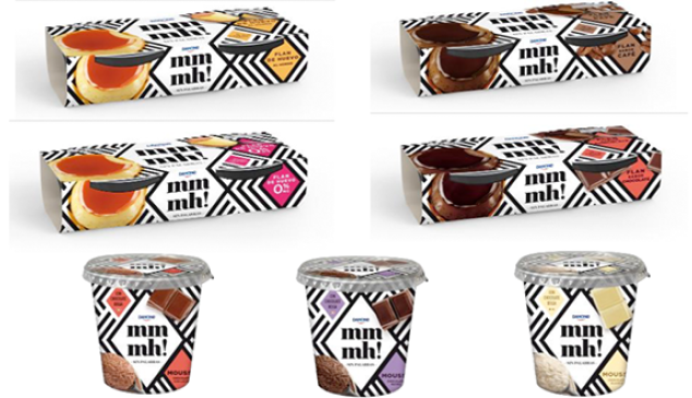 Danone lanza al mercado una nueva familia de postres enfocada al consumidor millennial y a los nuevos modelos de hogar. La familia Mmmh! incluye siete variedades, cuatro flanes y tres mousses: flan de huevo, flan sabor café, flan de huevo 0%, flan sabor chocolate, mousse de chocolate con leche, mousse de chocolate negro y mousse de chocolate blanco.