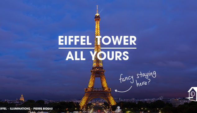 Home Away y Saatchi & Saatchi Londres y París ofrecen una noche en el monumento parisino. Para vivir esta expericia los usuarios pueden participar en un concurso escribiendo en 140 caracteres qué harían en ese espacio si tuvieran la oportunidad de pasar una noche en él.