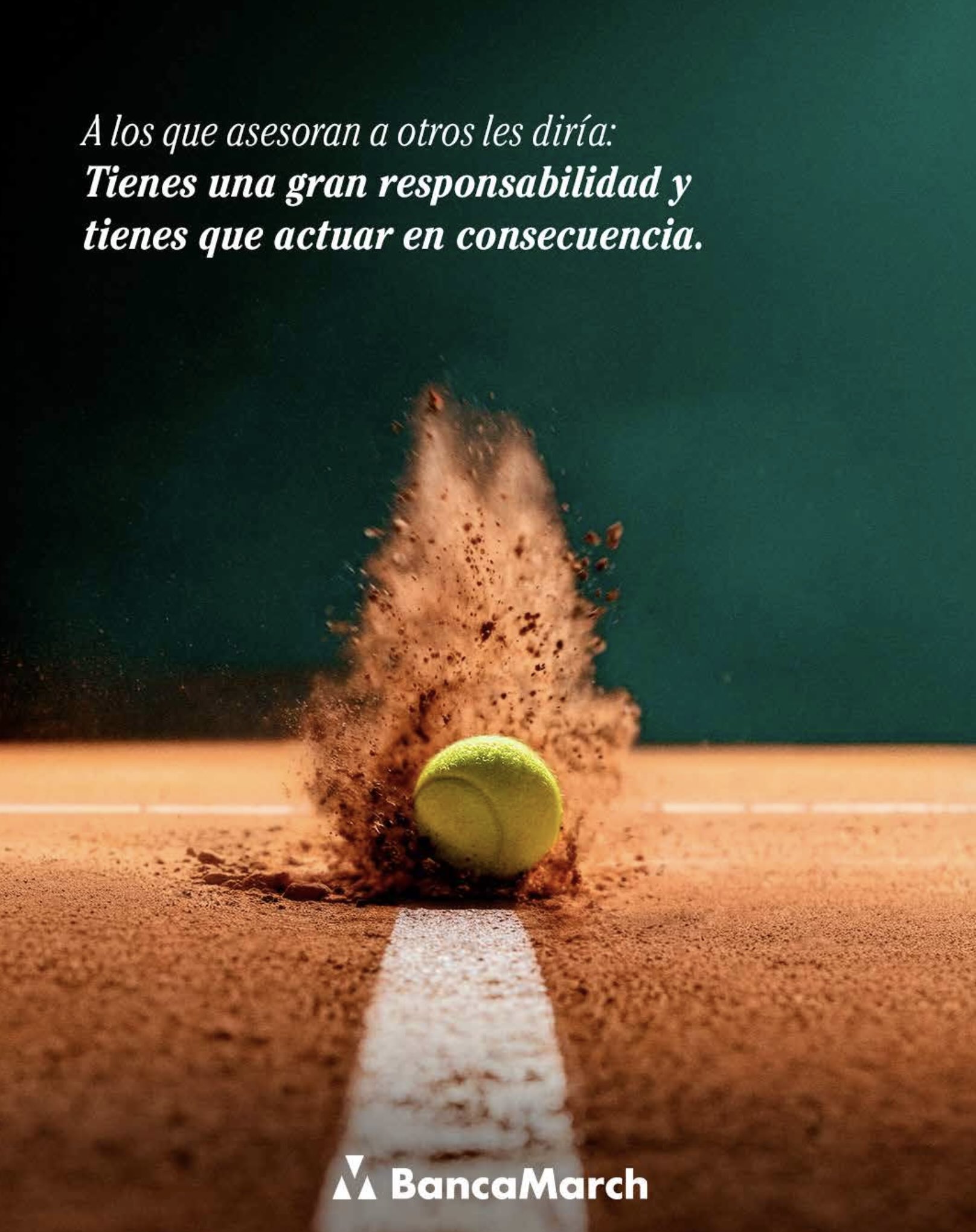 La campaña, activa desde el mes de febrero, se concreta en un anuncio protagonizado por Juan Carlos Ferrero en diferentes situaciones vinculadas al tenis, desde jugar sobre la pista hasta concentrado en las gradas. Sobre las imágenes, la locución aporta una serie de consejos que pueden aplicarse tanto al deporte como a la gestión económica, creando un paralelismo entre la figura del entrenador y la de la compañía. Visión a largo plazo, confianza en expertos o escuchar a alguien que te dice lo que necesitas, no lo que quieres oír, son algunos de ellos.