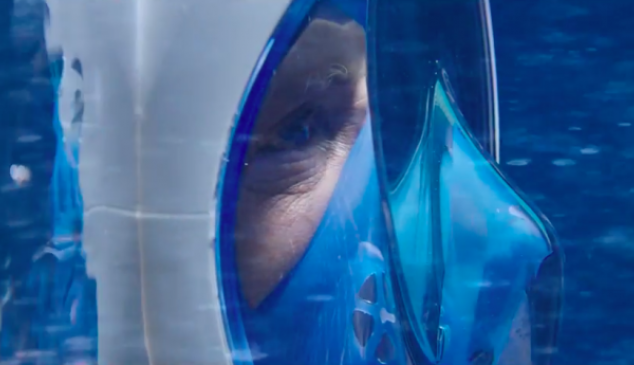 Mediante una fusión de límites entre el cielo y el mar, el spot muestra con elegancia lo que se siente al bucear con esta máscara.