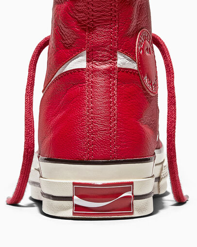 La colección se apoya en los elementos de diseño más reconocibles de Coca-Cola, como la onda, los colores rojo y blanco o, incluso, el destello verde de las botellas de vidrio vintage en las suelas de goma. La pieza estrella son las Chuck 70 de edición limitada, una versión premium disponible en piel y en el emblemático rojo Coca-Cola.