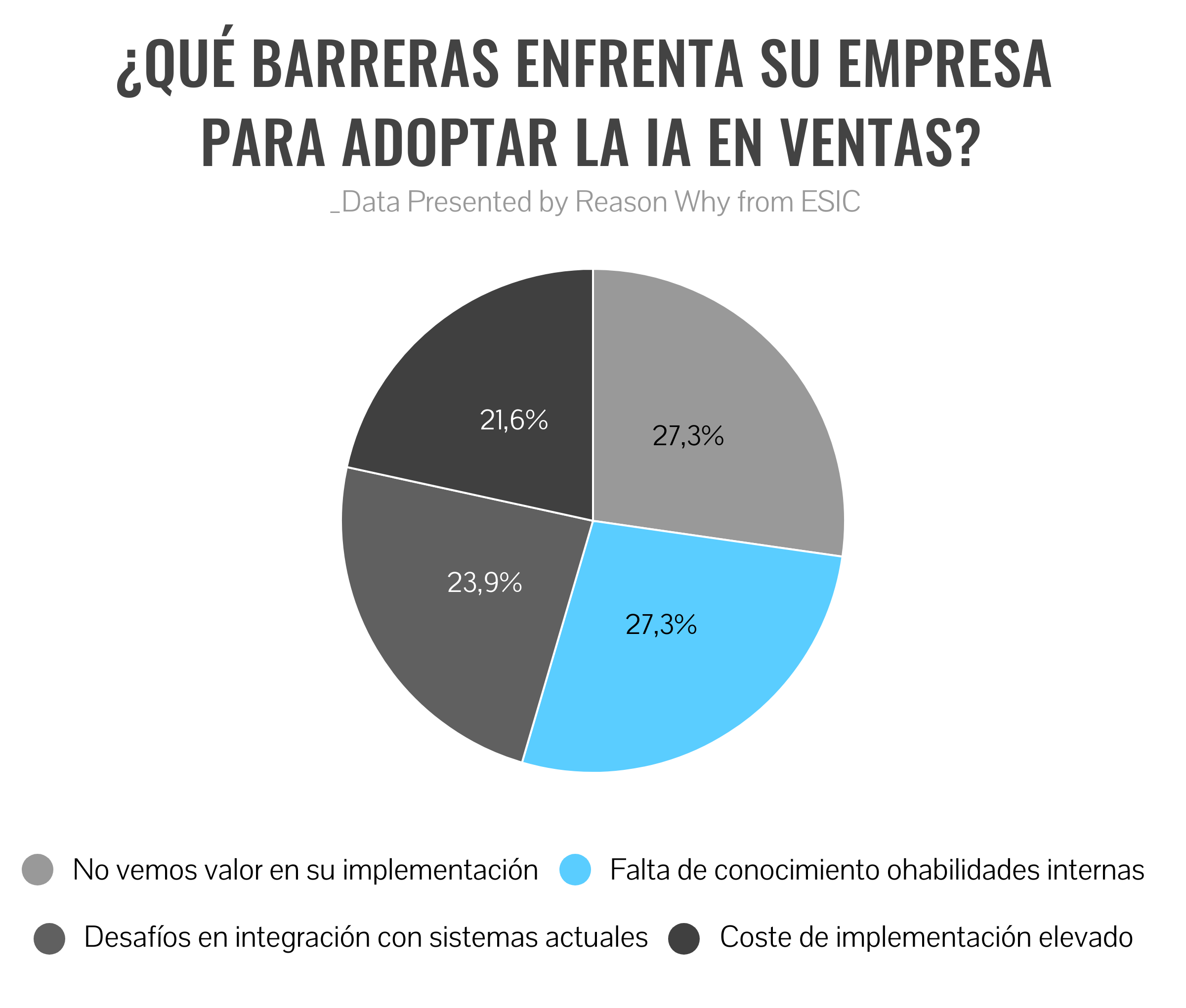 Sin embargo, la adopción real de estas tecnologías todavía avanza con cierta lentitud. El informe señala que el 64% de las empresas reconocen que aún no ha integrado la inteligencia artificial de forma estructural en sus procesos de ventas. La falta de conocimiento o el hecho de no ver valor en su implementación, se mencionan como algunos de los motivos principales.