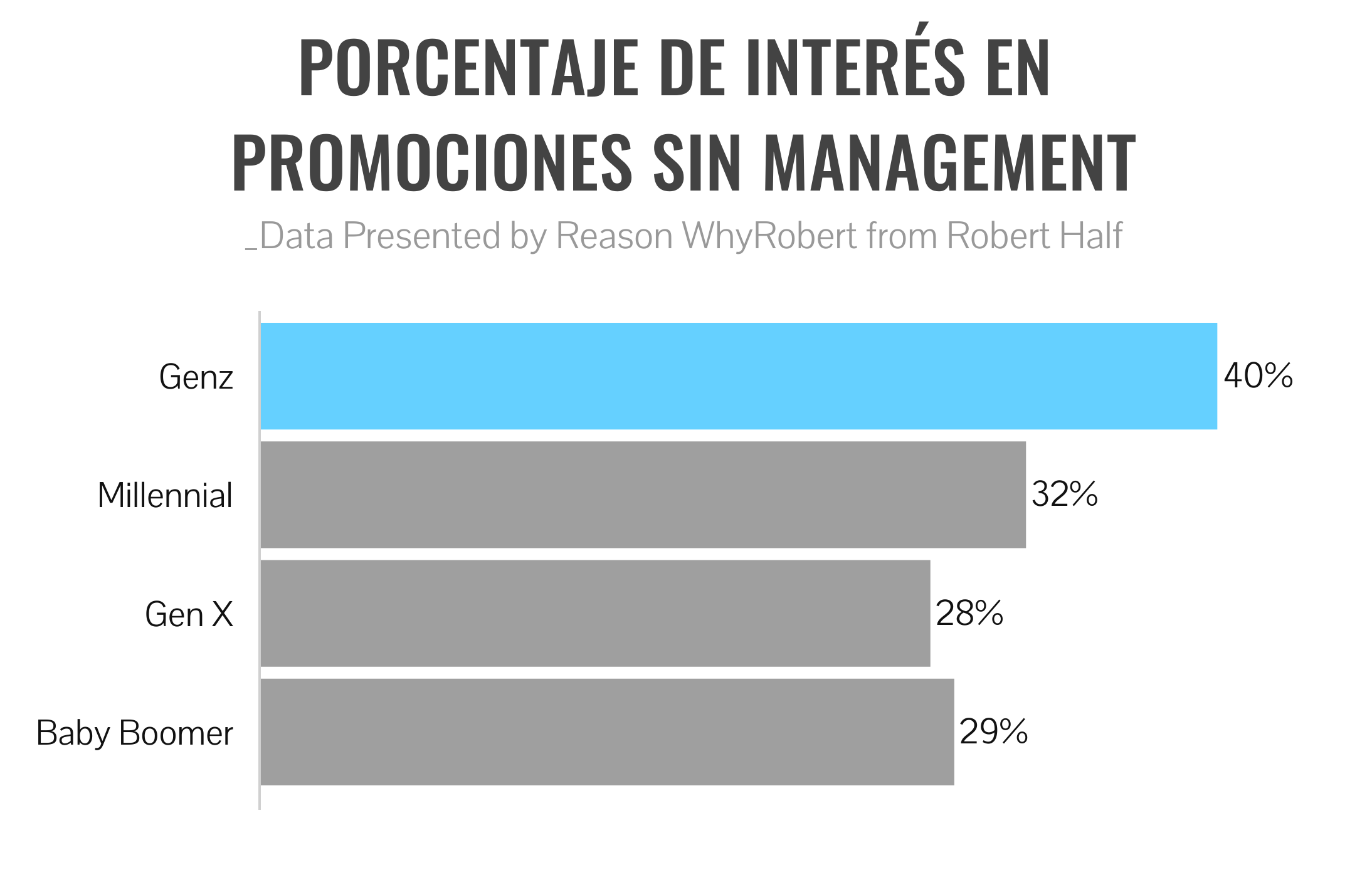 La Generación Z está rompiendo uno de los consensos históricos del mundo laboral: la idea de que progresar profesionalmente pasa, de forma inevitable, por convertirse en jefe. Según un estudio reciente de la consultora Robert Half, el 40% de los profesionales de esta generación solo aceptarían un ascenso si no implicara gestionar personas, el porcentaje más alto entre todos los grupos generacionales analizados. Frente a la promoción tradicional, una parte creciente de jóvenes priorizan la especialización, la estabilidad y el bienestar personal.