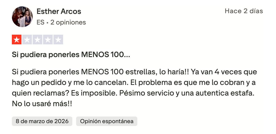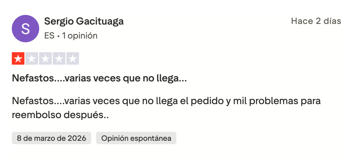 Este tipo de comentarios se repiten también en redes sociales, donde algunos usuarios denuncian dificultades para contactar con atención al cliente o reclamar reembolsos cuando el pedido no se completa.