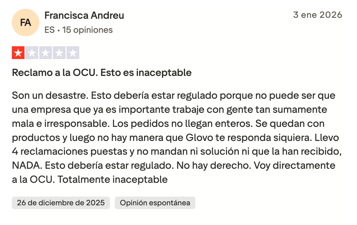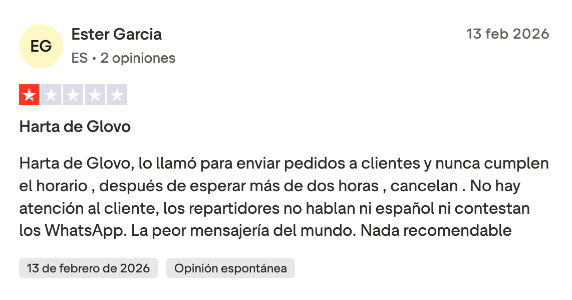 Pero en paralelo al cambio de modelo operativo, durante los últimos meses han proliferado en internet las críticas de usuarios relacionadas con la calidad del servicio. Entre los problemas más mencionados figuran retrasos prolongados, pedidos que nunca llegan o repartidores que no recogen los pedidos en los establecimientos.