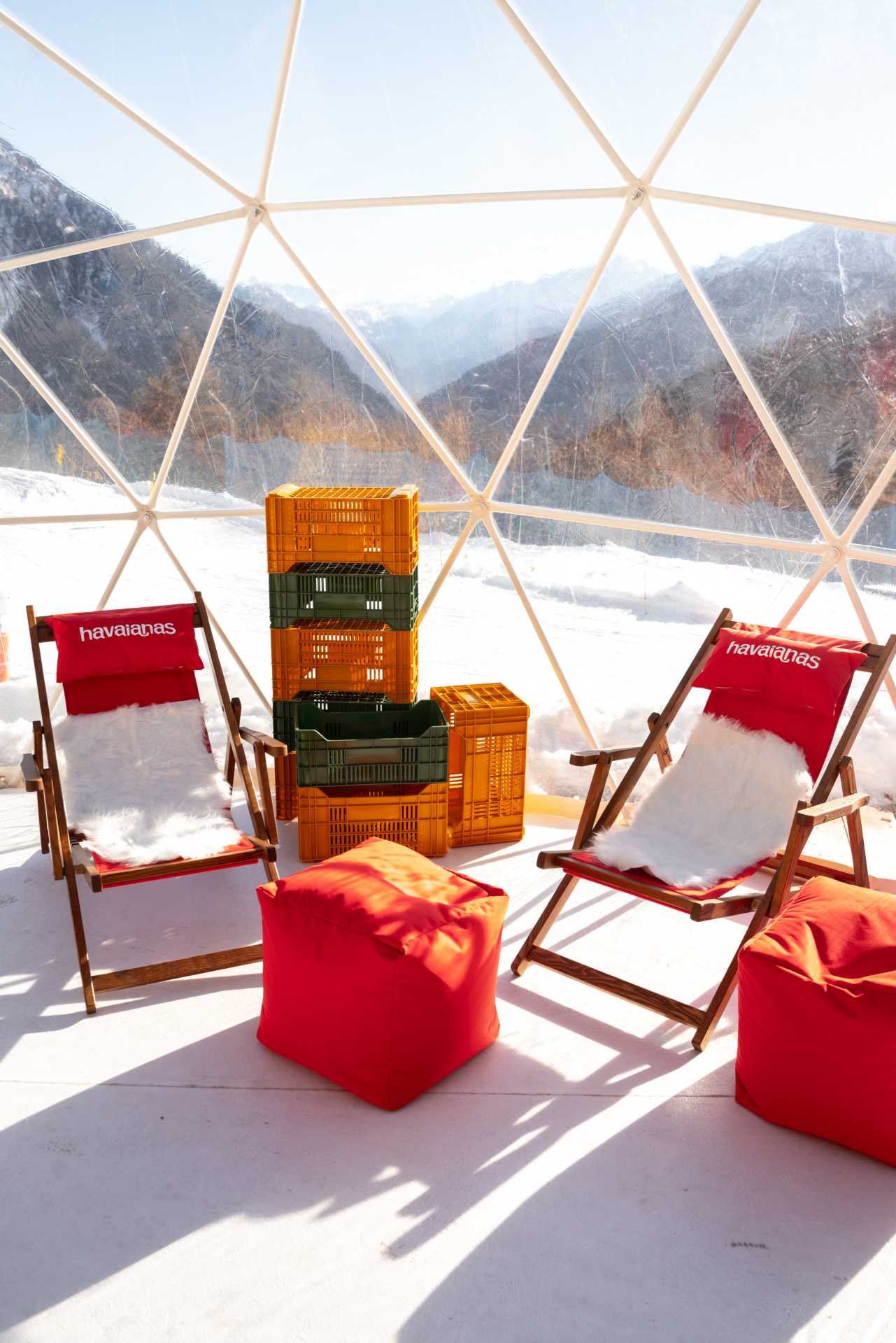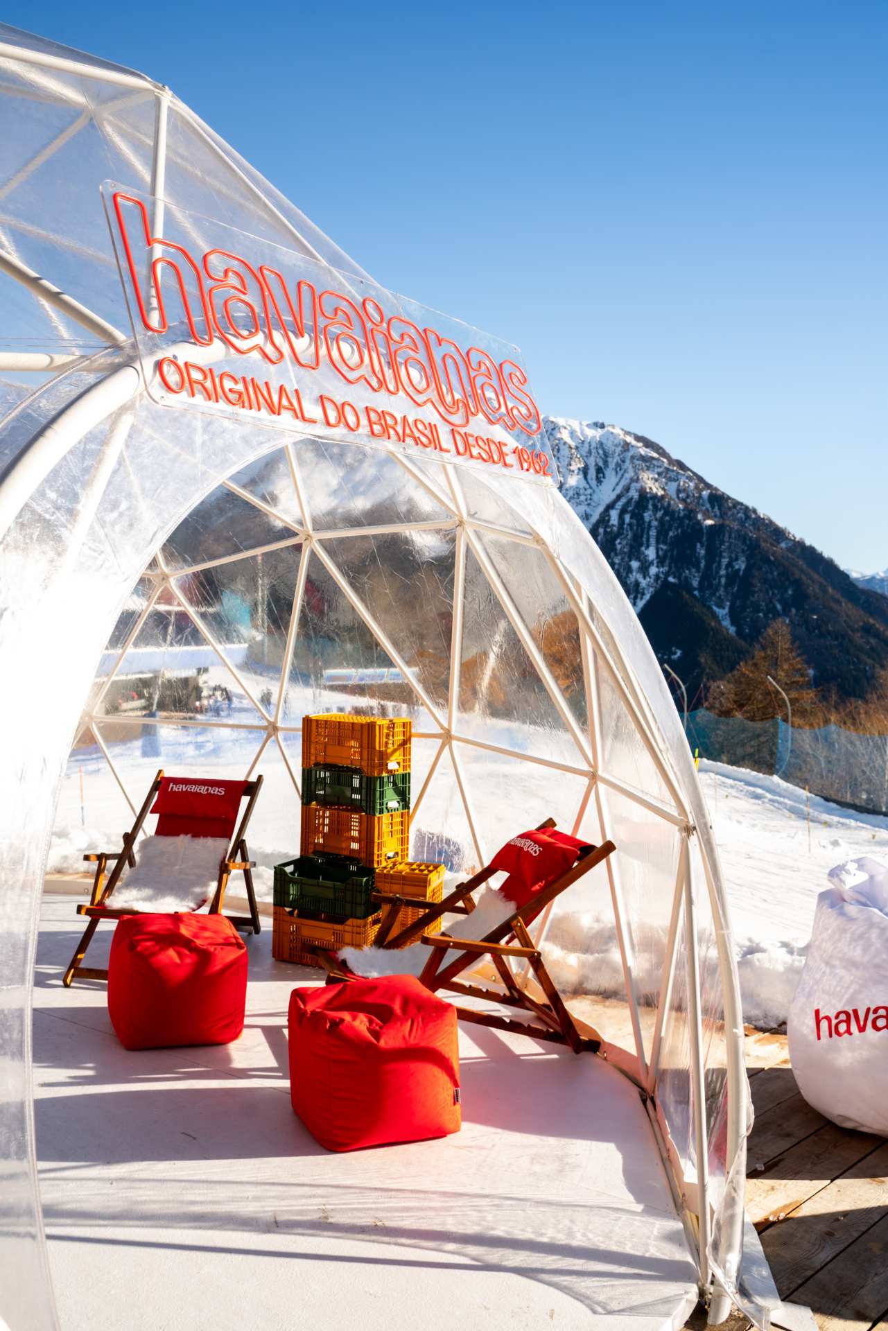 El espacio estuvo abierto a esquiadores, snowboarders y amantes de la montaña y fue concebido como un espacio de encuentro y conexión para descubrir el universo Havaianas desde una nueva perspectiva, con calma, y en un entorno sorprendente teniendo en cuenta los orígenes de la marca.
