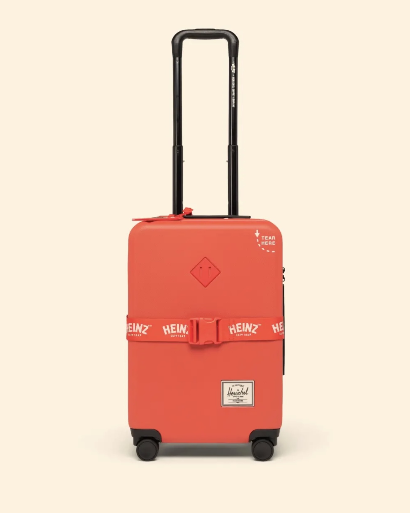 La alianza entre las marcas ha dado como resultado dos piezas de equipaje que, según explican desde Heinz, fusionan sabor y estilo. La colección se compone de la maleta Herschel Heritage Hardshell Medium Luggage y la maleta de cabina Herschel Heritage Hardshell Large Carry-On. Ambas cuentan, entre otras cosas, con cierres de cremallera o esquinas reforzadas para mayor protección; están hechas con material de policarbonato 70% reciclado, lo que las hace resistentes y a prueba de impactos.