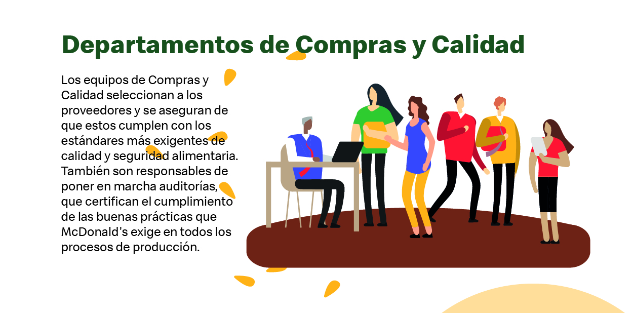 - Compras y Calidad: son los encargados de seleccionar a los proveedores y asegurarse de que cumplen los estándares de calidad y seguridad alimentaria. También son los responsables de impulsar auditorías que certifican el cumplimiento de las buenas prácticas de los procesos de producción