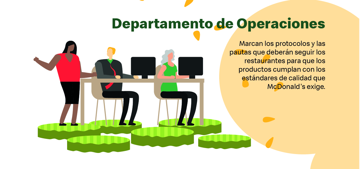 - Operaciones: marcan los protocolos y pautas que deben seguir los restaurantes para que los productos cumplan con los estándares de calidad