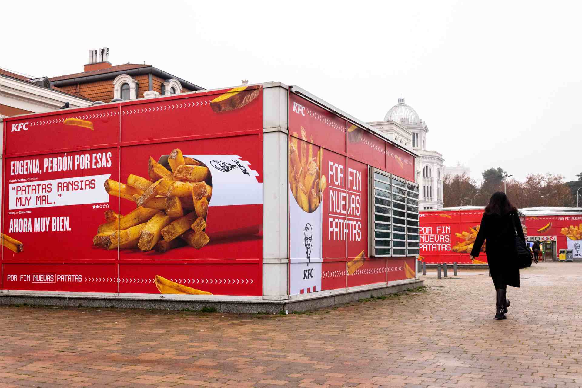 Para comunicarlo se han activado creatividades digitales, así como de publicidad exterior que se están ejecutando en los espacios del intercambiador de Príncipe Pío, en Madrid. Las piezas ilustran algunas de las críticas más duras que KFC ha recibido respecto a sus patatas a través de redes sociales. La intención, según explica la agencia en un comunicado, es trasladar el sentido del humor de la marca y conectar con el público de forma honesta.