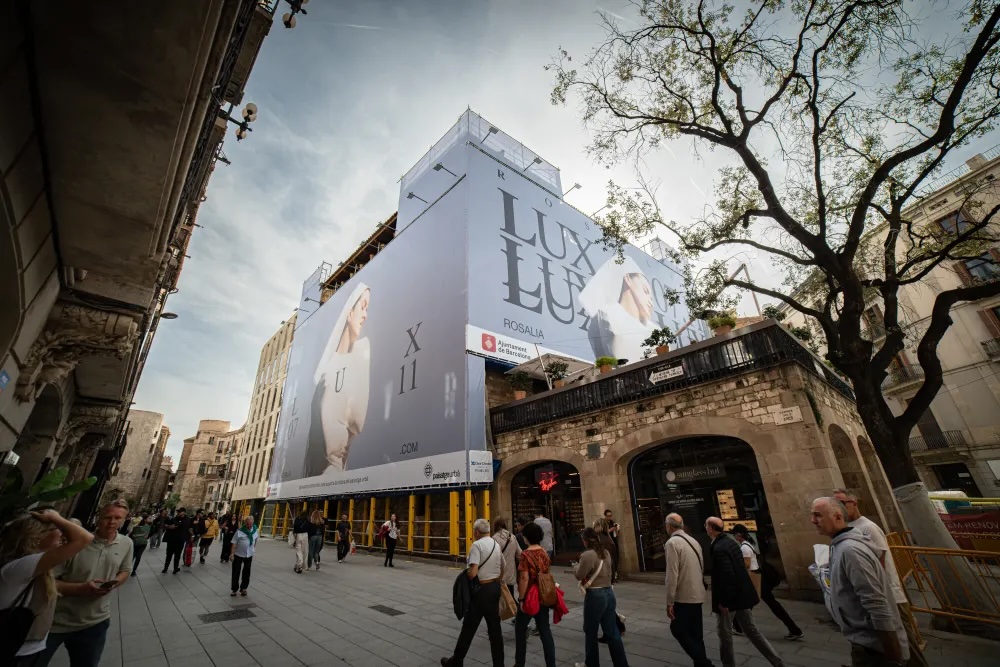 La lona se encuentra, además, en las inmediaciones de la catedral, lo que refuerza la alineación entre la estrategia publicitaria y el concepto creativo propuesto por Rosalía en "Lux". También está cerca de otros puntos neurálgicos de la ciudad, como la Plaça Catalunya o el Gran Teatre del Liceu. La pieza cubre dos fachadas completas del edificio, sumando un total de 630 metros cuadrados de superficie publicitaria, y cuenta con iluminación nocturna, lo que garantiza una visibilidad completa y continuada.