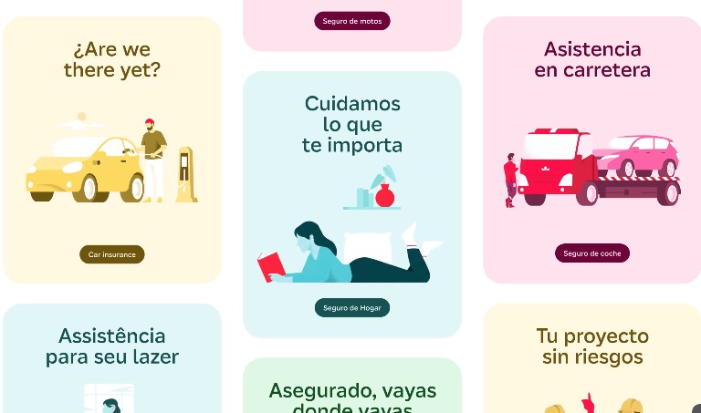 La renovación de la imagen incluye una tipografía hecha a medida que también persigue la cercanía, así como un nuevo sistema gráfico, basado principalmente en ilustraciones que pretenden acercar Mapfre a nuevas generaciones. Éstas, acompañadas de los colores, servirán para identificar las distintas verticales del negocio de la aseguradora.