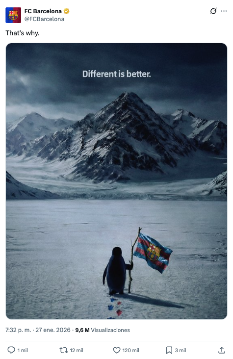 El meme ha sido el caldo de cultivo para reinterpretaciones de todo tipo por parte de las marcas. La más comentada ha sido la de la Casa Blanca, que ha leído en la marcha del pingüino una suerte de odisea triunfalista que ha puesto la imagen al servicio de las ambiciones expansionistas de Donald Trump en una alusión a su interés por Groenlandia.