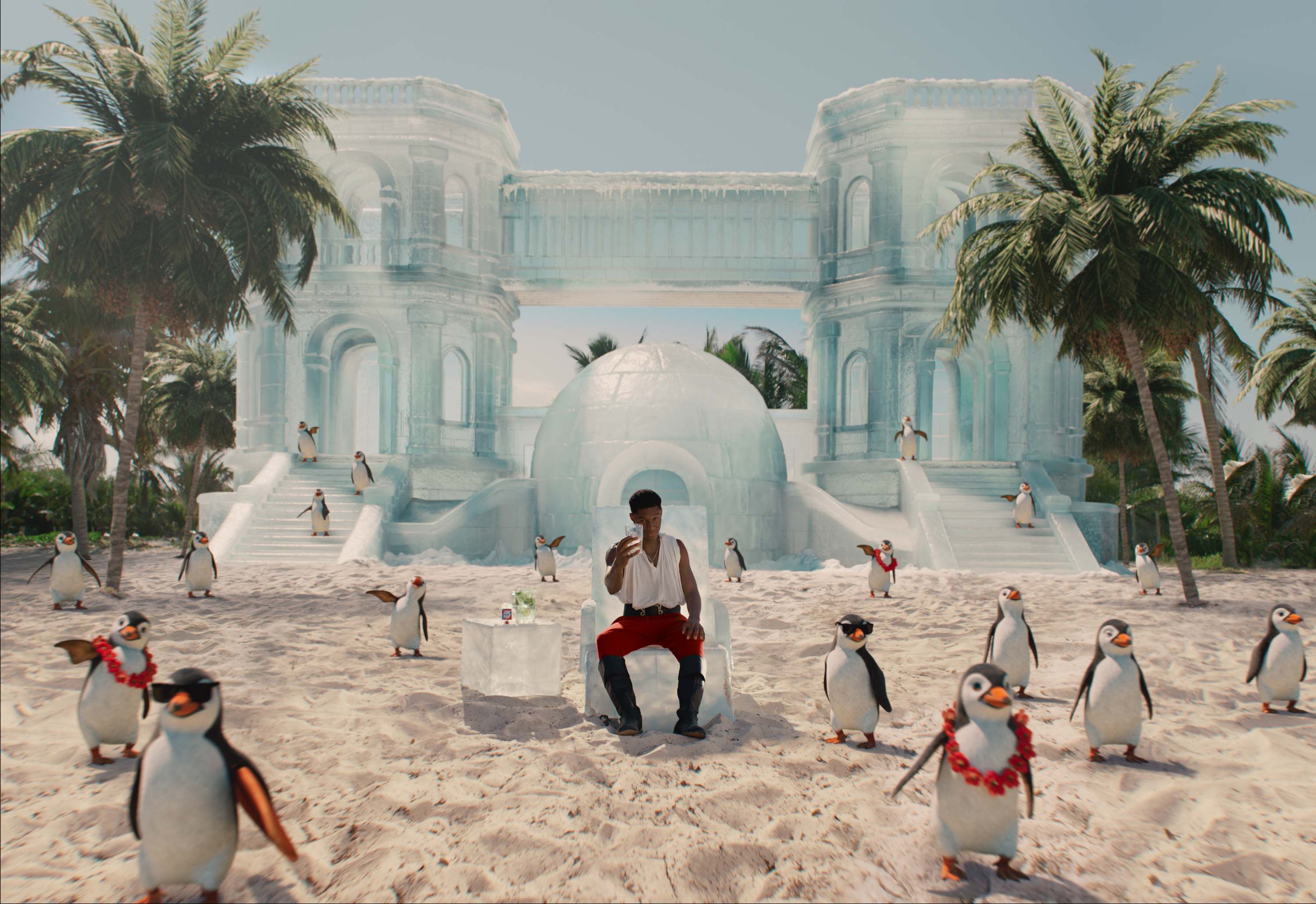 Porque entre los náufragos aparece un hombre relajado, y sorprendentemente perfumado, que sigue manteniéndose fresco gracias a Cold Spice. El producto llega hasta él en una nevera transportada por pingüinos surfistas, en un giro surrealista que refuerza el tono característico de la marca.