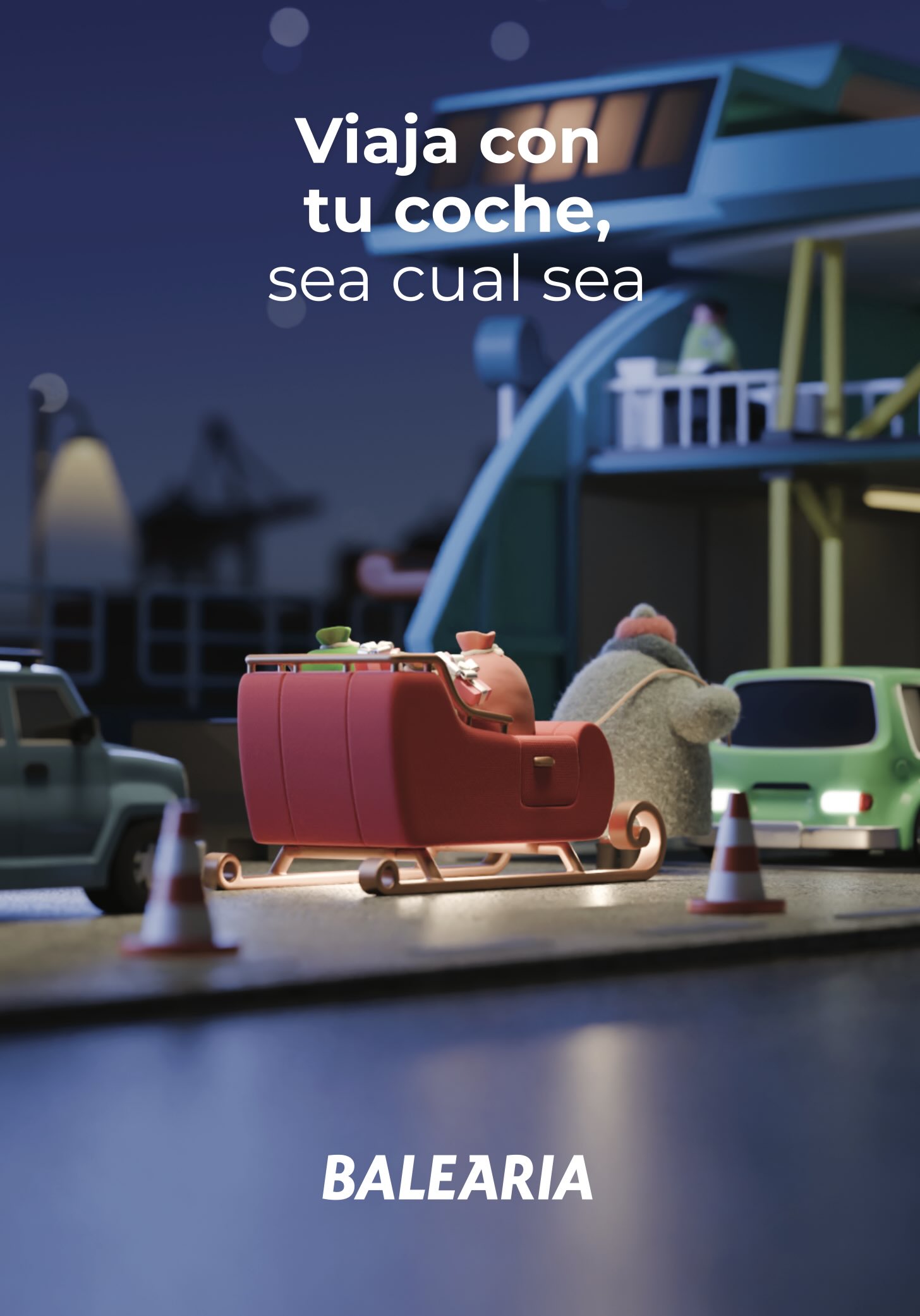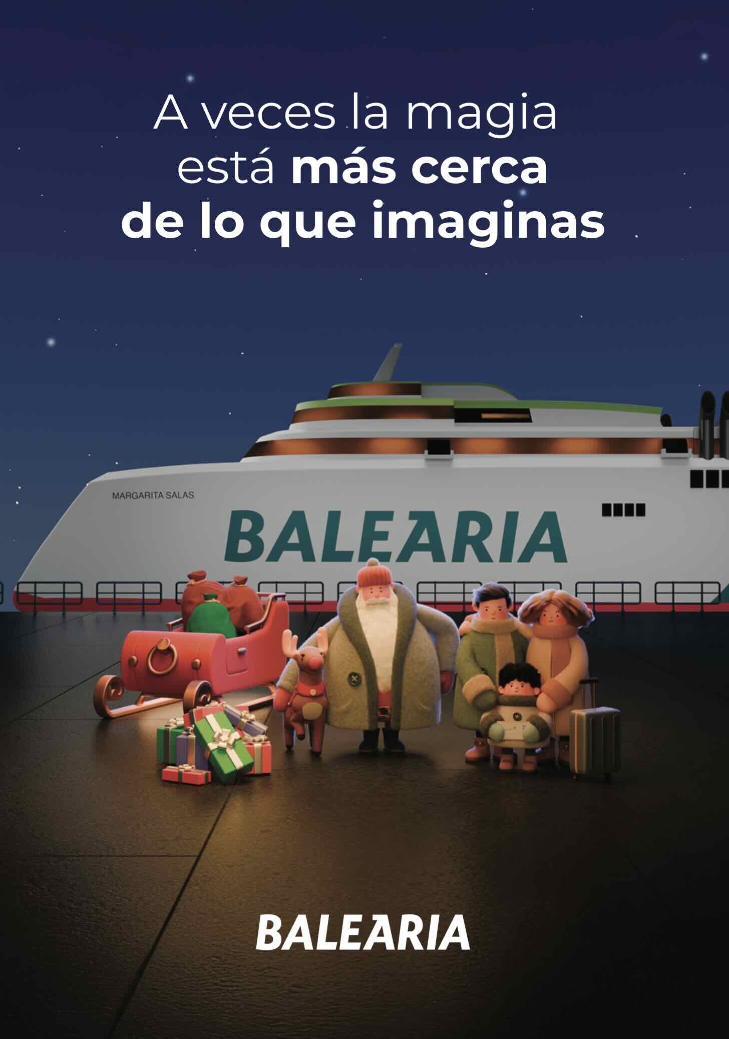"La travesía mágica de Baleària" es la propuesta de la compañía para estas fiestas, un cortometraje de animación ideado y desarrollado por la agencia Felicidad Collective, del creativo Chacho Puebla, y realizado junto a la productora argentina Fiel Estudio, y que ha requerido más de tres meses de trabajo. En él propone una divertida y entrañable historia en la que Papá Noel elige uno de los barcos de la compañía para vivir un viaje especial.