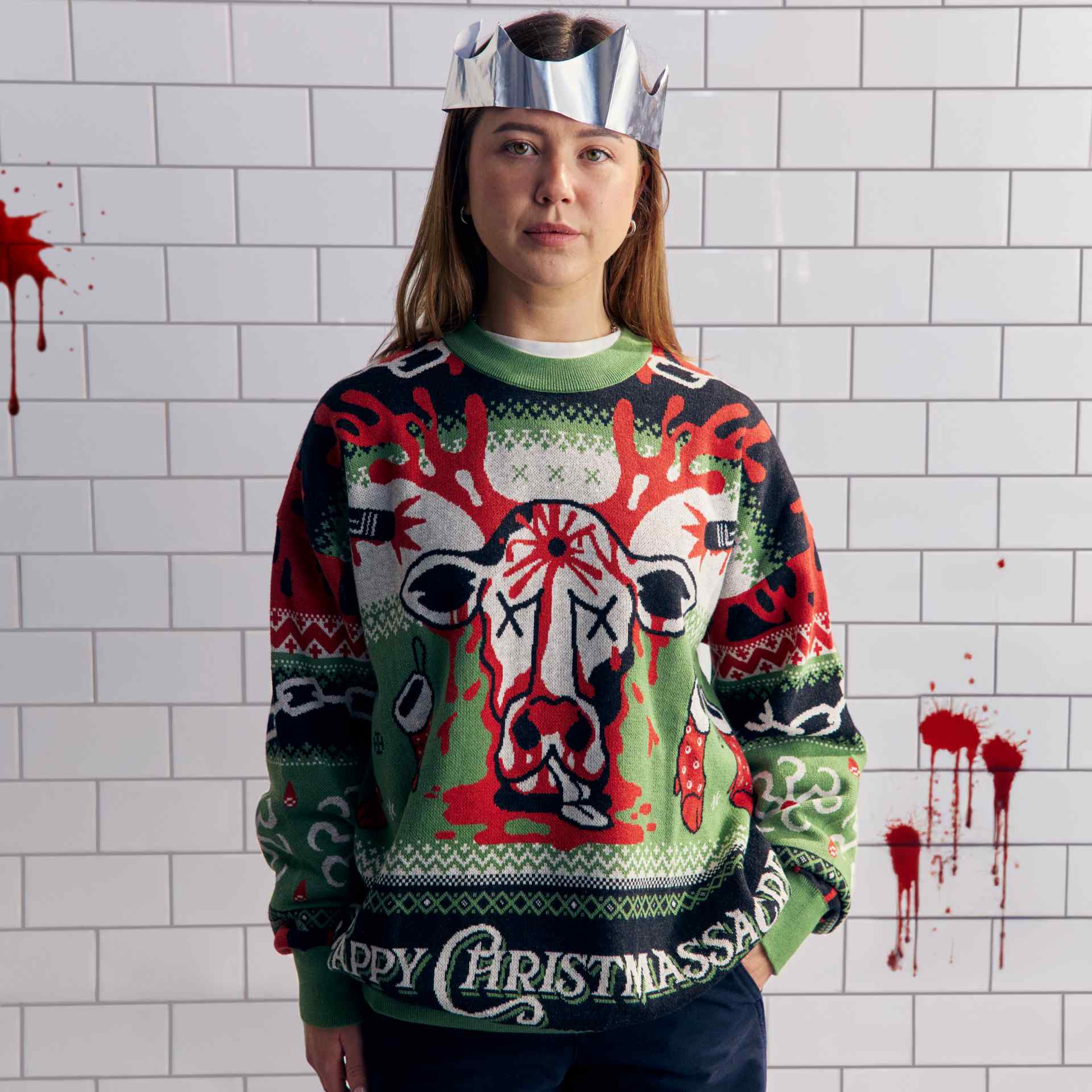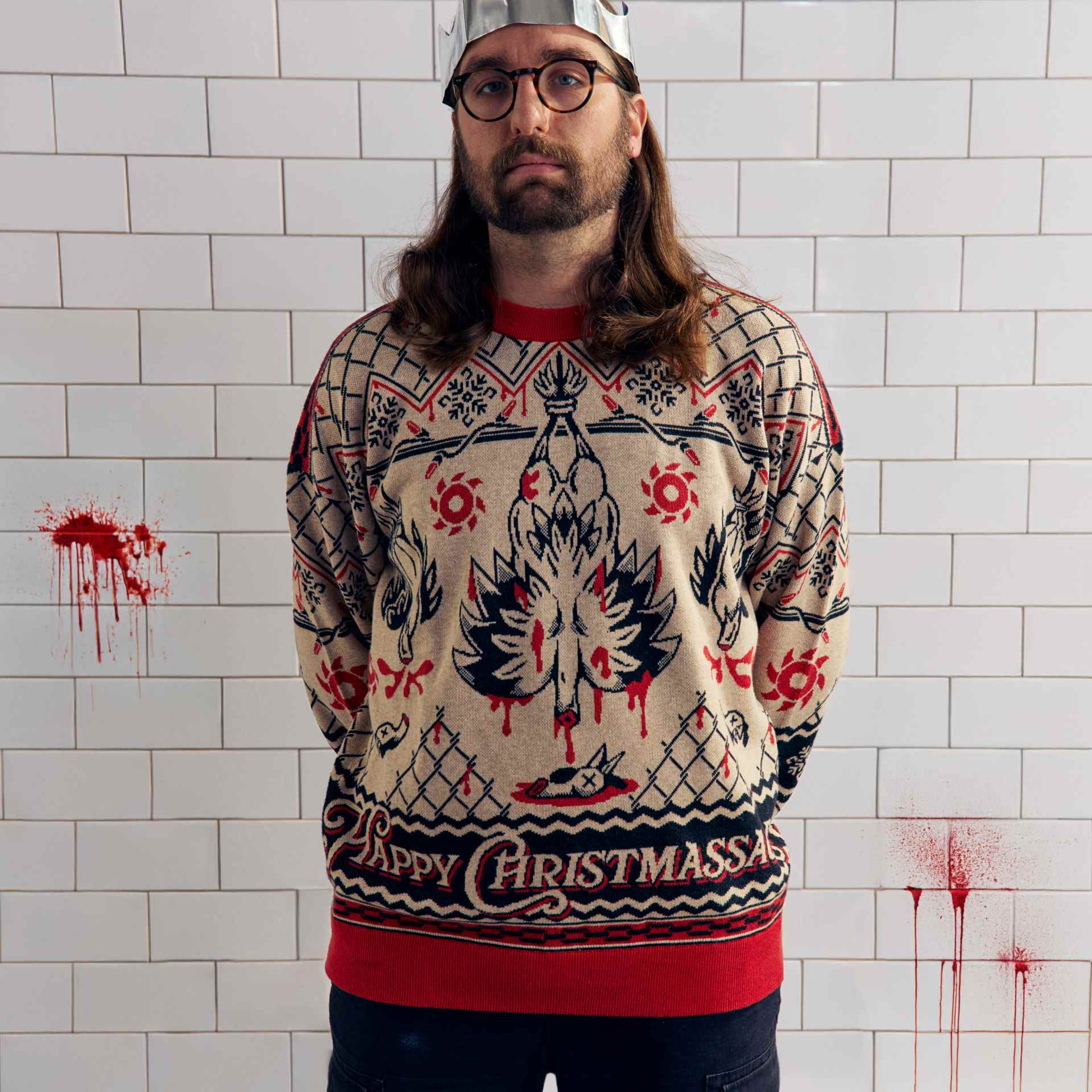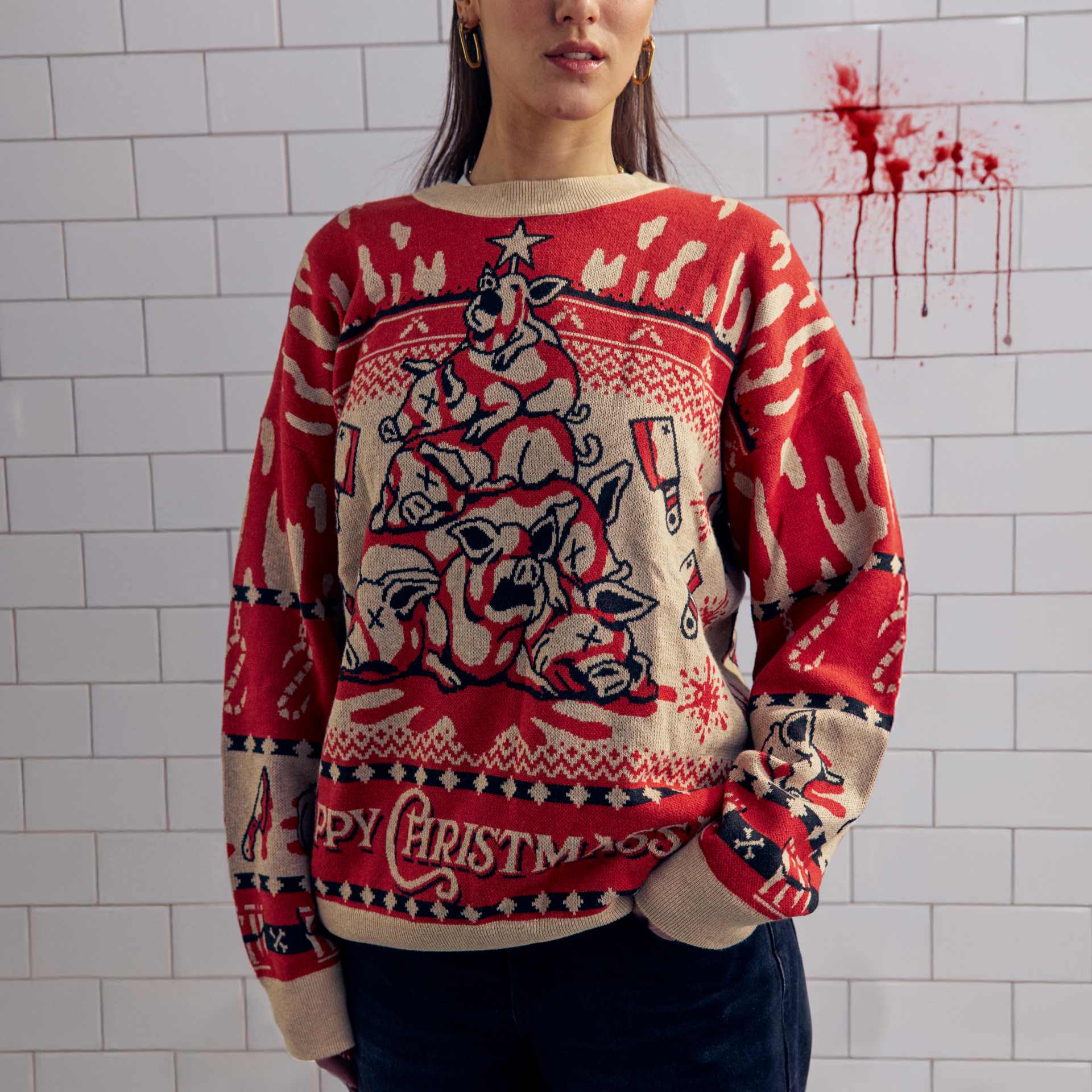 A primera vista los jerséis parecen como cualquier otro de los habituales navideños, pero al prestar atención se observan ilustraciones de animales que han sido sacrificados para satisfacer los menús navideños. La colección consta de tres modelos: