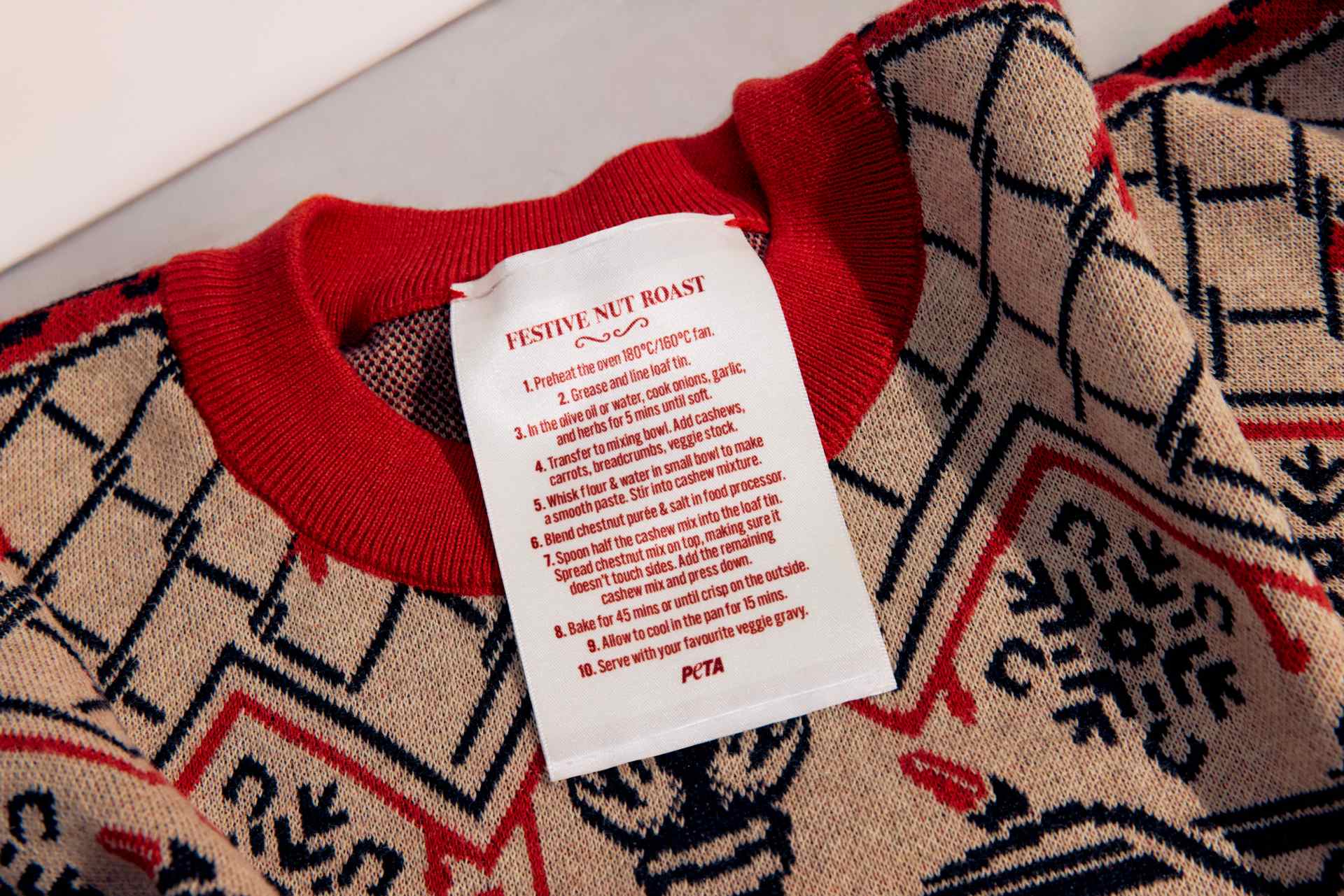 Las prendas, tal y como explican desde PETA, se han creado con algodón 100% vegano, evitando así el esquilado sangriento de ovejas. Además, cada diseño incluye una etiqueta en la que se ofrece una sencilla receta de guiso vegano, a modo de recordatorio acerca del valor de elegir la compasión en lugar de la carnicería.
