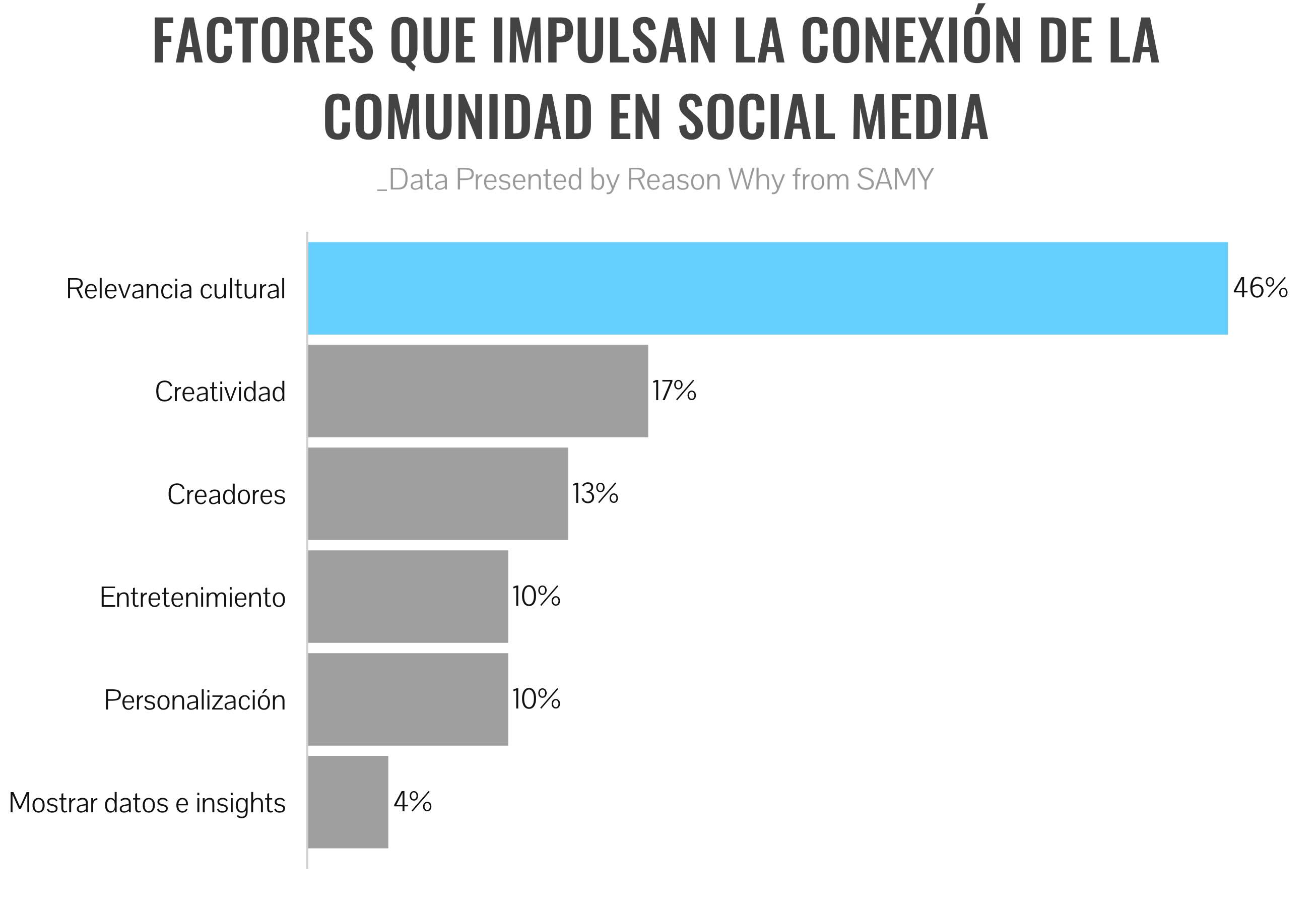 - Sumarse a tendencias temporales en redes sociales no es la única forma de generar relevancia cultural y comunidad. También lo es conectar a través de los códigos propios de cada plataforma. Para ello es necesario trabajar la familiaridad y la identificación, ya sea a través del uso recurrente de un formato, un color o un sonido; así como la consistencia en los distintos canales respetando las particularidades de cada uno.