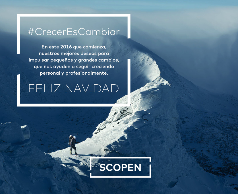 Scopen en cambio se despide de 2015 recordando que con un nuevo año llegan nuevos retos. De este modo y con su felicitación nos recuerdan que la mejor forma de afrontarlos es seguir creciendo.