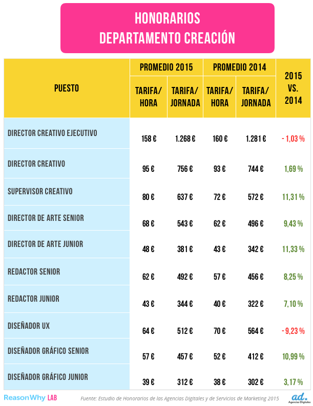 Algo menos ligeras son las del departamento de Medios. Aunque son datos positivos, porque tanto el Director como el Planificador han aumentado en torno al 3% sus tarifas: