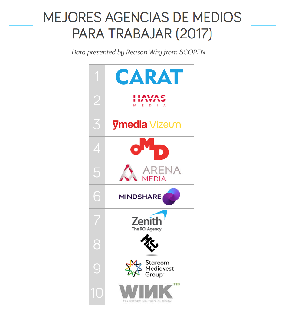 Si esta semana publicábamos información de la última edición del estudio “BEST AGENCY TO WORK” de agencias creativas, realizado por SCOPEN, ahora le toca el turno al mismo estudio de Agencias de Medios, donde Carat aparece como la más atractiva.