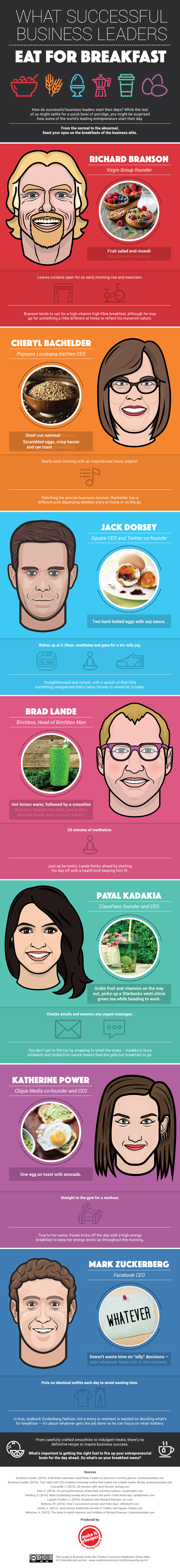 Los líderes de algunas de las empresas más importantes del mundo, como Facebook, Twitter o Virgin saben que un buen desayuno es muy importante para comenzar bien el día.