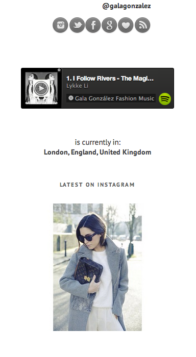 La bloguera de moda Gala González destaca su perfil de Instagram en la parte derecha de su blog.