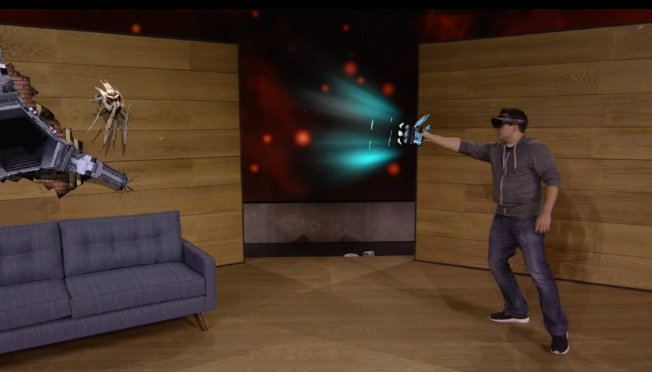 La compañía ha empezado por su consola de videojuegos, con una presentación en vivo de Hololens: videojuegos, aplicaciones, utilidades y entretenimiento basado en realidad virtual y realidad aumentada. La prueba llevada a cabo sobre el escenario fue muy espectacular y mostró una gran respuesta del controlador a los movimientos del jugador.
