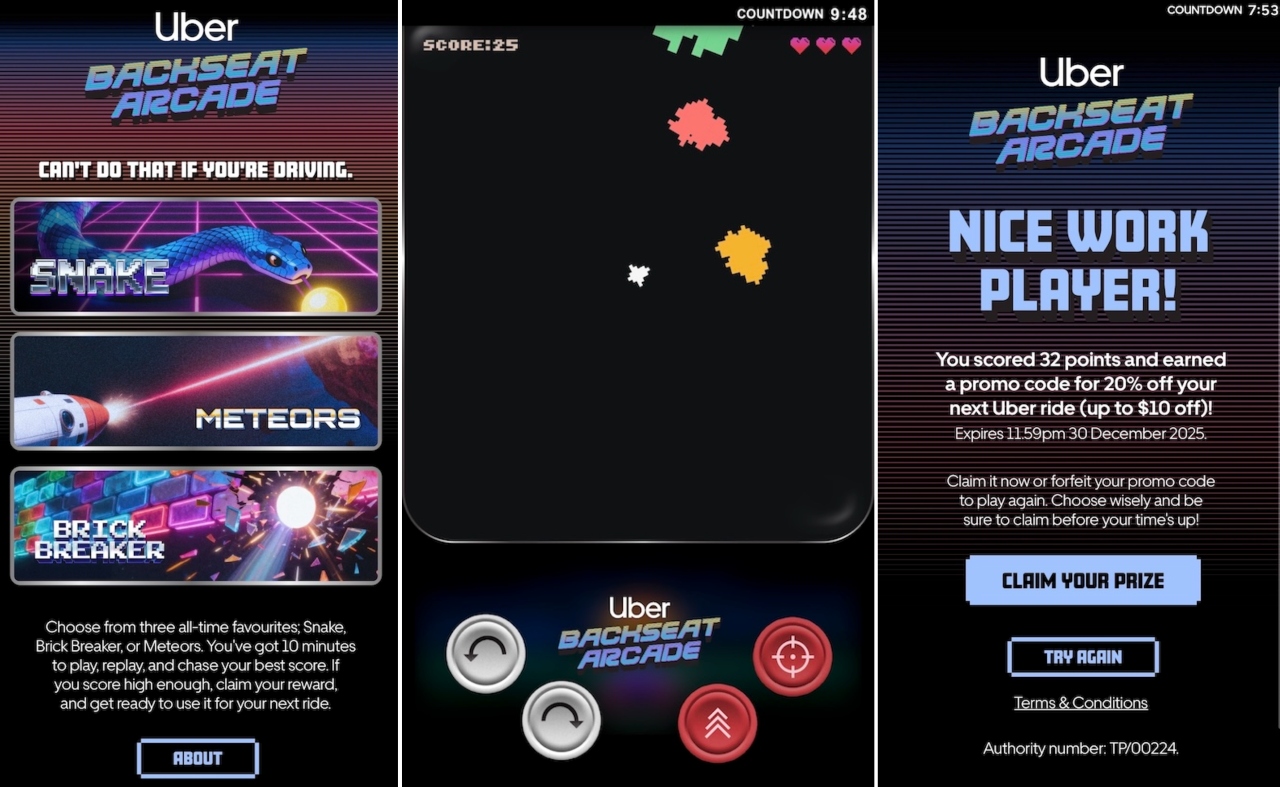 Los datos de uso compartidos por Uber Australia reflejan el impacto de la propuesta. Cerca de 20.000 usuarios participaron en la experiencia y Snake se consolidó como el juego más popular, concentrando más de la mitad de las partidas. La duración media de juego superó los cuatro minutos y el 90% de los participantes jugaron durante más de un minuto, con 3.000 repeticiones y casi 8.000 cupones promocionales ganados y canjeados.