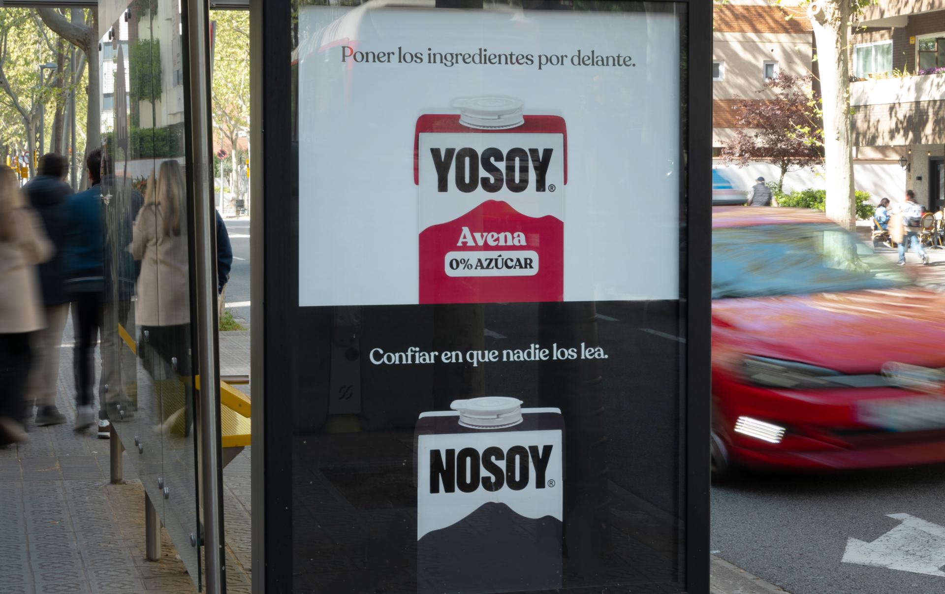 Lo hace con una campaña de publicidad exterior de ámbito nacional desarrollada junto a la agencia Elastic y con planificación de Arena Media. Se compone de unas sencillas gráficas que dividen el lienzo a la mita: en la parte superior, sobre fondo blanco, se encuentra YoSoy y “buenos ingredientes, y ya”; mientras que la parte inferior se sitúa “NoSoy”, con “azúcares, fructosa, aromas, antioxidantes” y otros muchos ingredientes.