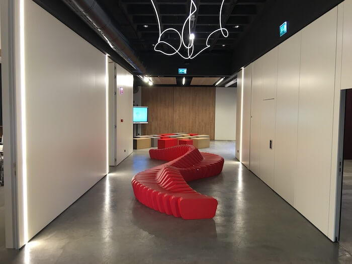 Todas las plantas del Havas Village tienen un recibidor con sofás cómodos, pantallas y diferentes decorados.